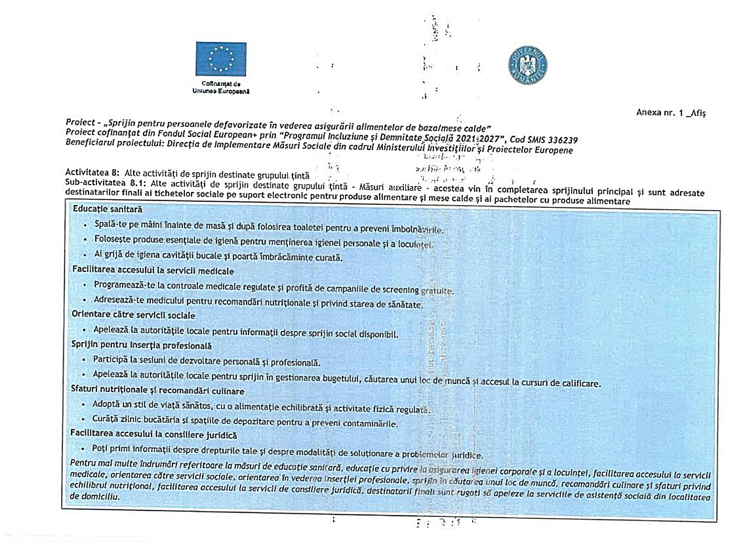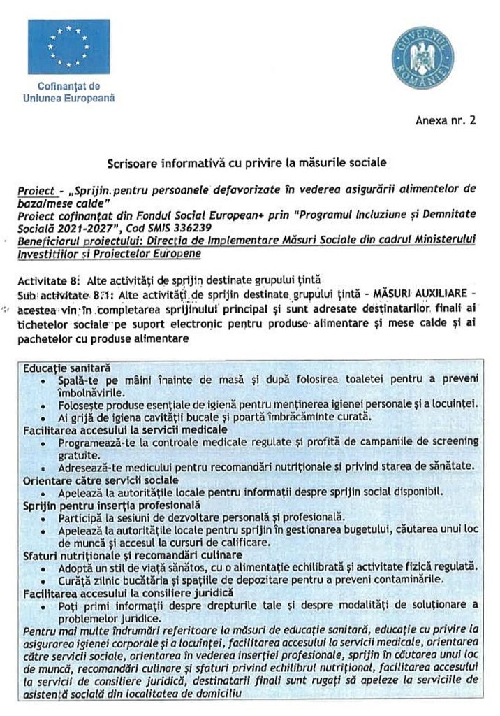 Scrisoare informativă cu privire la măsurile sociale